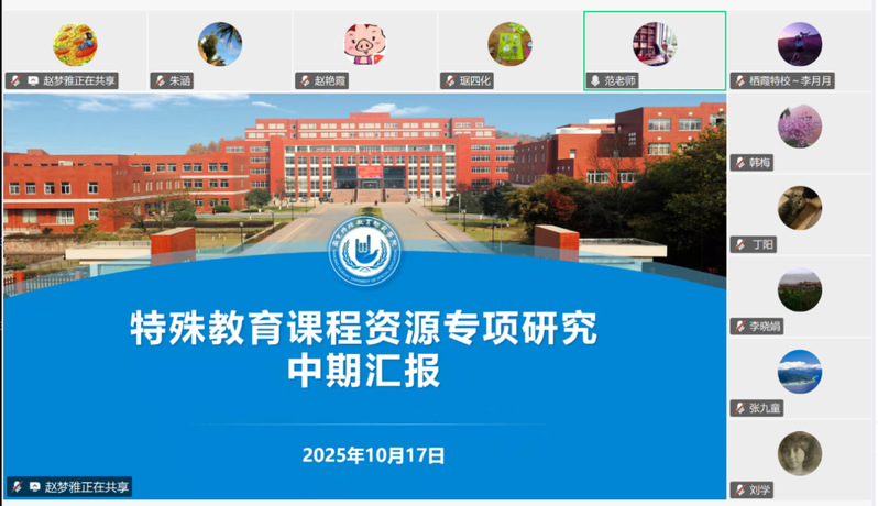 近日,特殊教育课程资源中心牵头召开“特殊教育课程资源专项研究中期汇报会,会议由课程资源中心负责人主持,相关课题负责人及南京多所基层特教学校代表参会。会议通过“成果汇报+专家点评+方向明确”三环节,系统梳理阶段性进展,破解研究瓶颈,衔接基层需求。